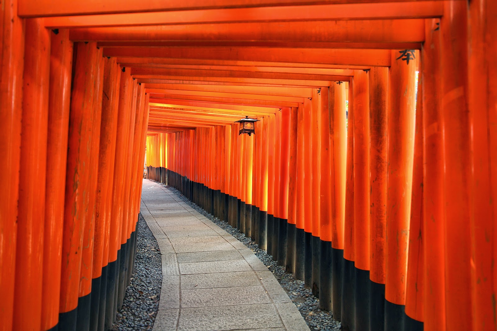 繼續往上走,這裡應該算是「千本鳥居」的入口,從這裡開始就有無限蜿蜒連綿的鳥居在等著你穿越,彷彿穿透另一時空。
