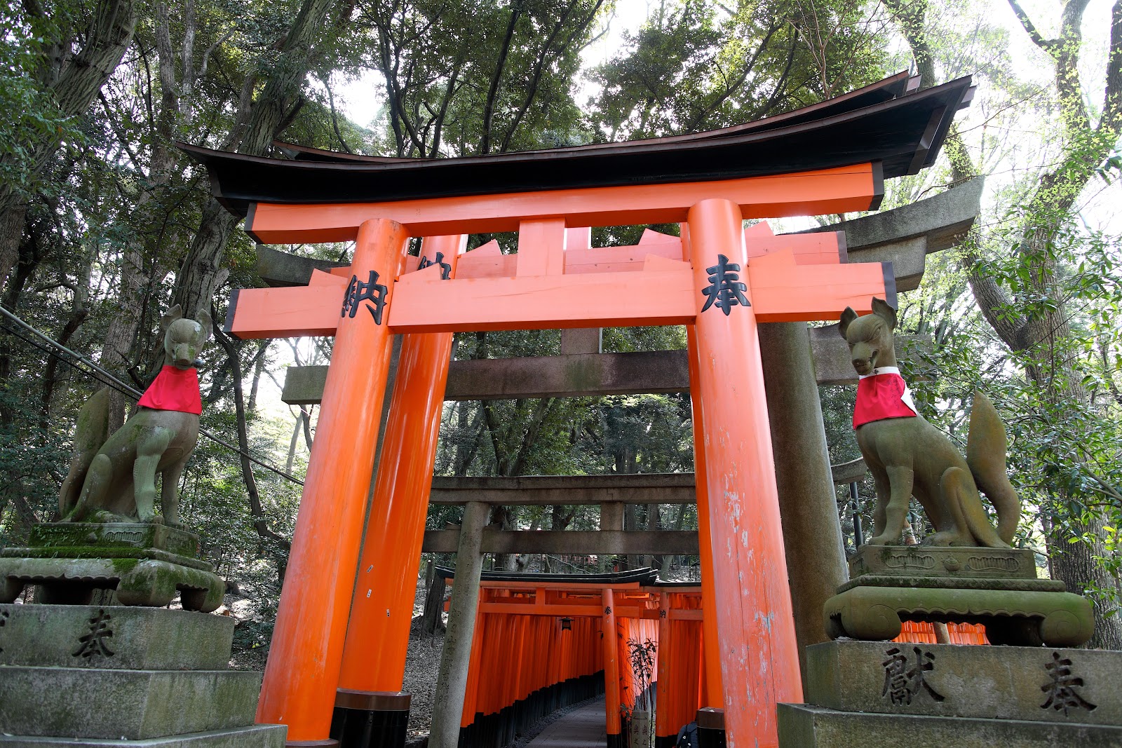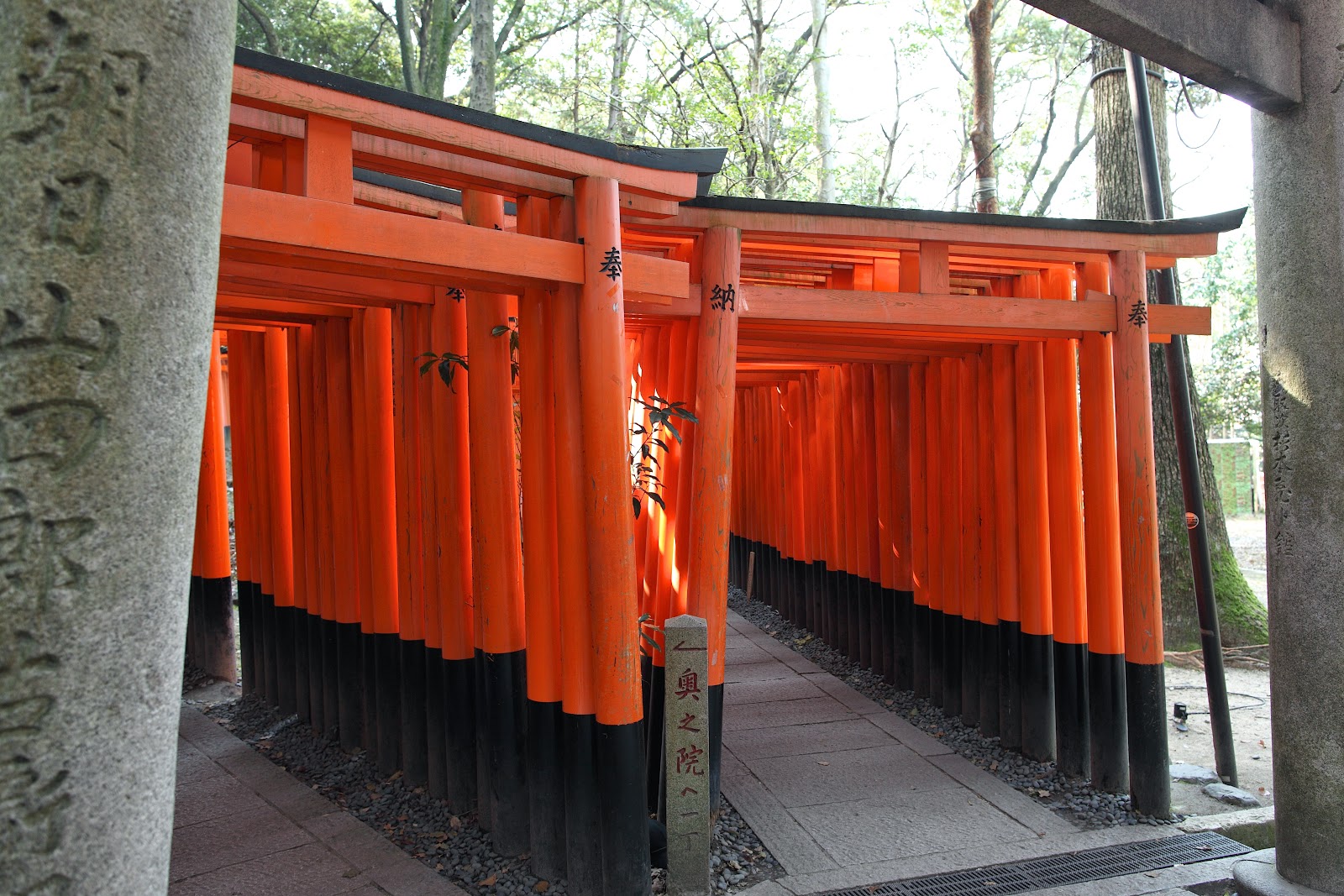 在我心目中,「伏見稻荷大社」應該也算是一個盛大的旅遊目標,從過去一些電影與書籍總看過不少它壯麗且神祕的鳥居群,有巨有細、鮮豔與斑駁。如今,終於造訪了此地,多少也是有點害羞又興奮。所以,就別嫌我太俗氣。