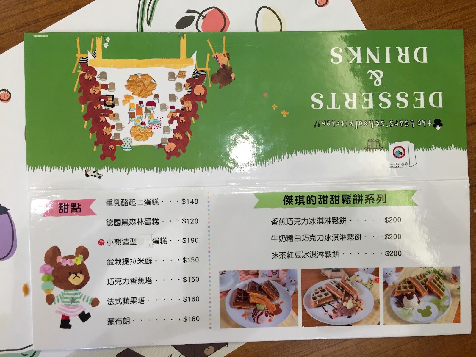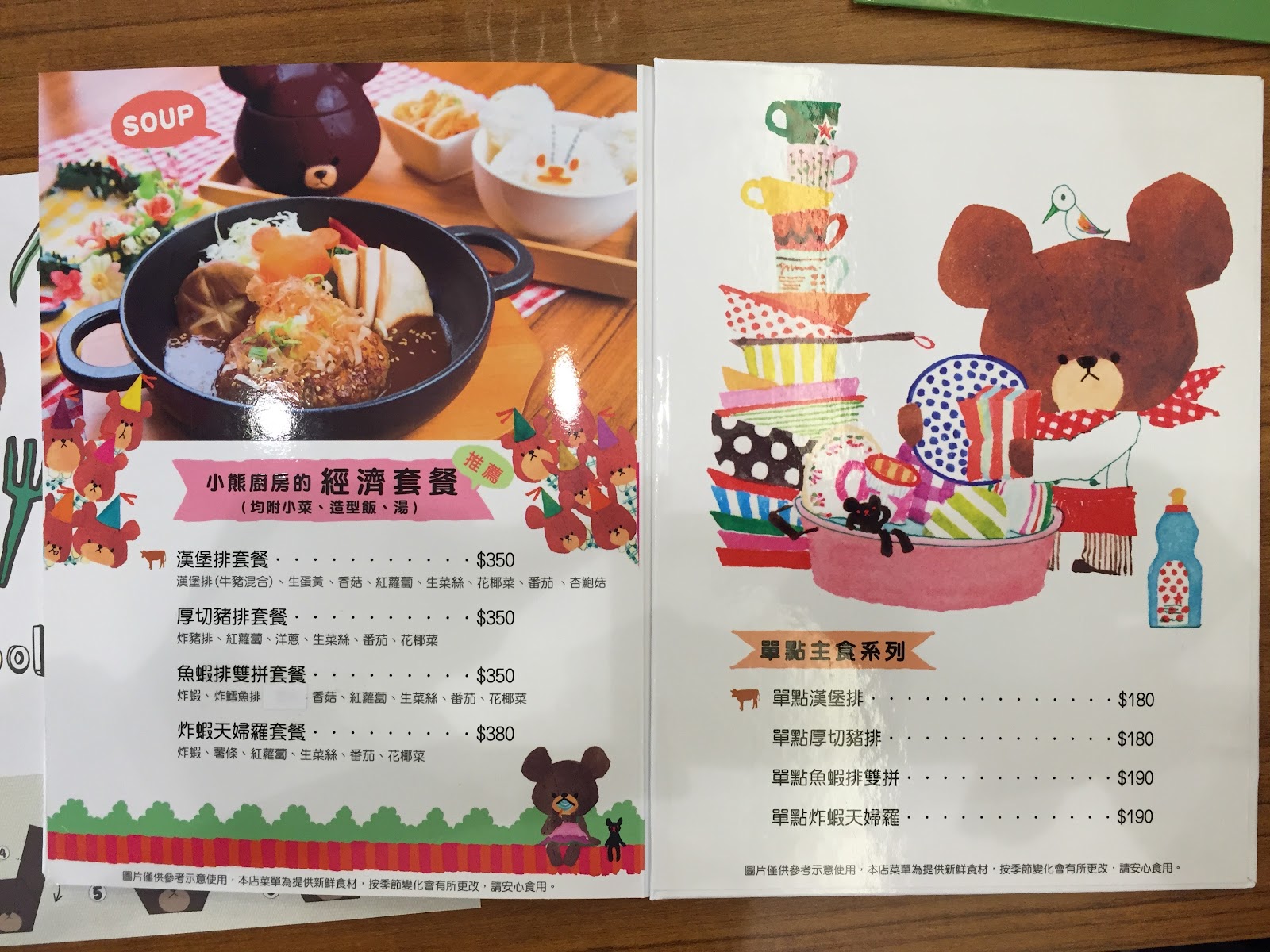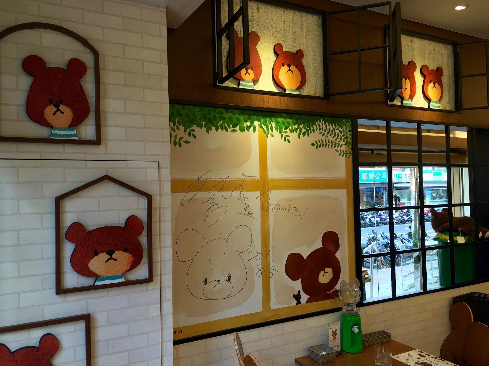 繼度蜜月時巧遇的小熊學校展覽後,我們又再次的與小熊Jackie相遇。某次拜訪餐廳的路程上經過一間與周遭風格迥異的店面,注目一看,竟然是小熊學校的主題餐廳。當下覺得既訝異又興奮,想說小熊學校在台灣好像也沒有到非常熱門,竟然會有人願意經營主題餐廳,況且又是在交通極度不方便的民生社區東側這,而且竟然一點消息風聲都沒聽說,就這樣默默的開業了。馬上傳給老婆這好消息,畢竟她可是超級頭號粉絲,一定會很想來朝聖的。
