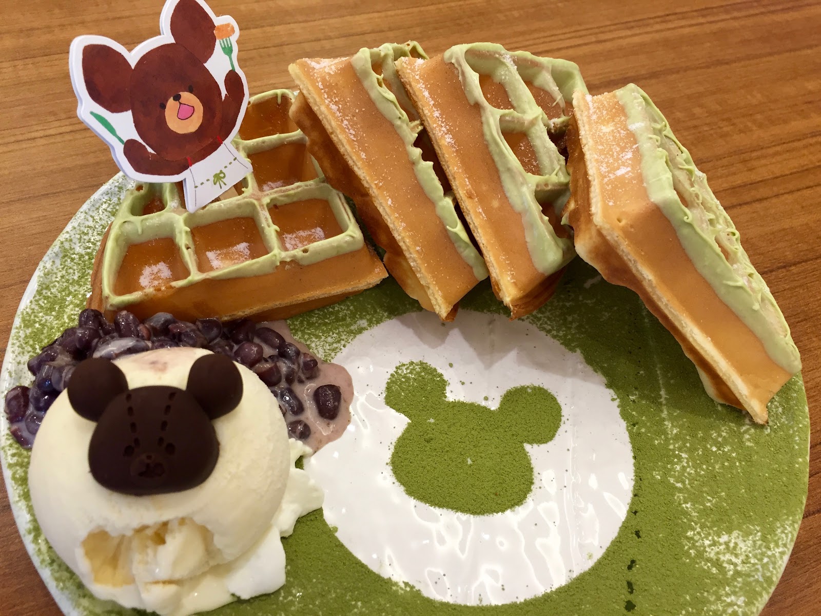 造型還滿厲害的,鬆餅邊邊都有抹上抹茶醬喔!鬆餅吃起來還好,有點韌,咬得下巴有酸。