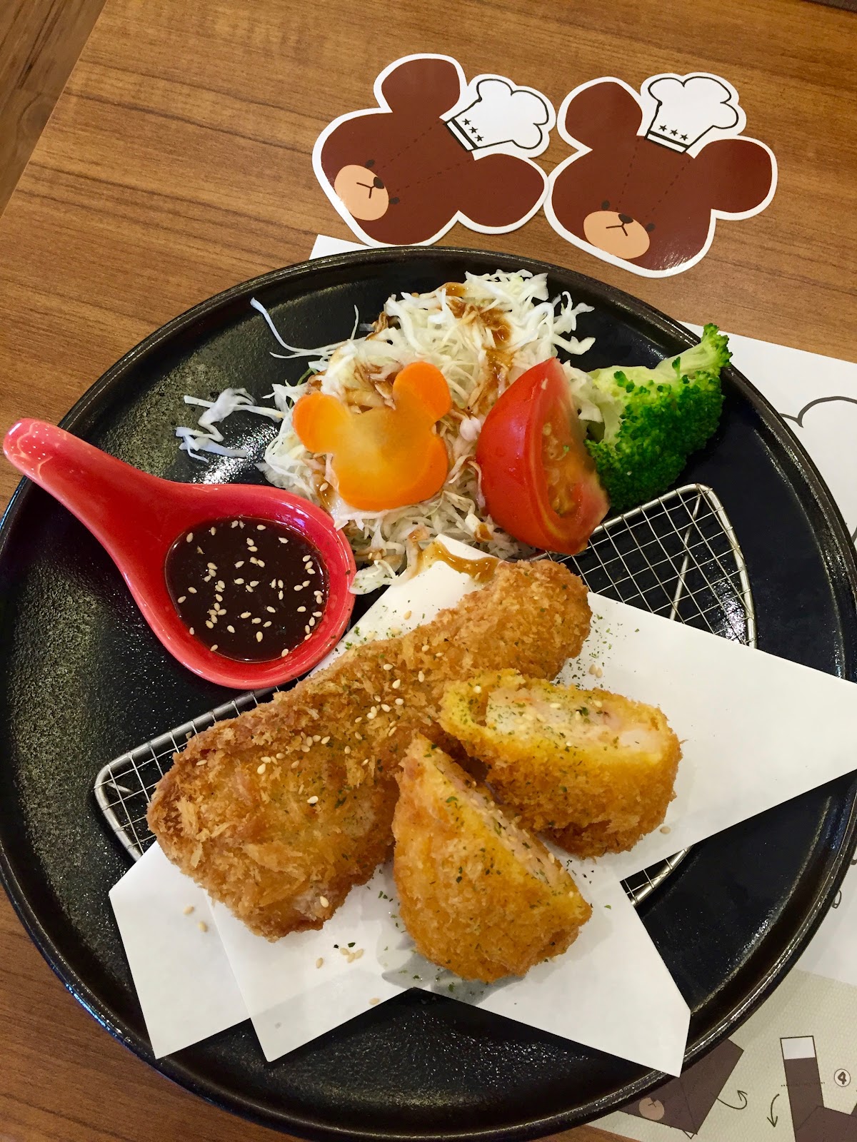 主餐是經濟套餐的「魚蝦排雙拼套餐」 ,有附小菜、造型飯跟湯。