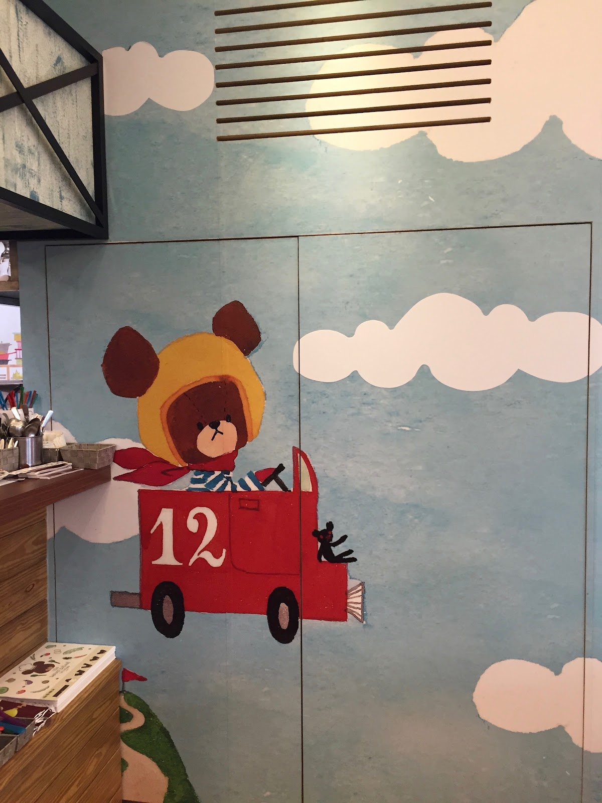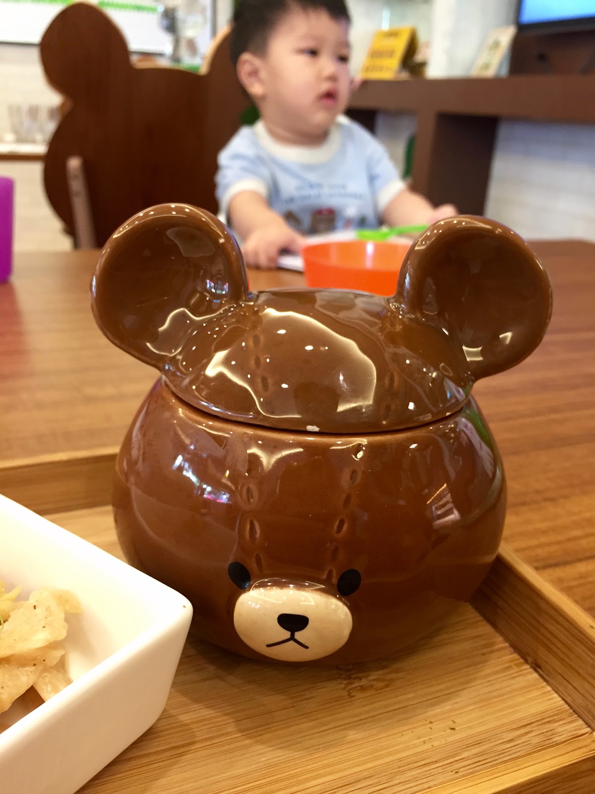一到餐廳內真的會感動,整體氣氛營造很完整,各處小細節都很注重,螢幕上一直播放小熊學校的動畫,真要說比較普通的地方就只有廁所啦!
