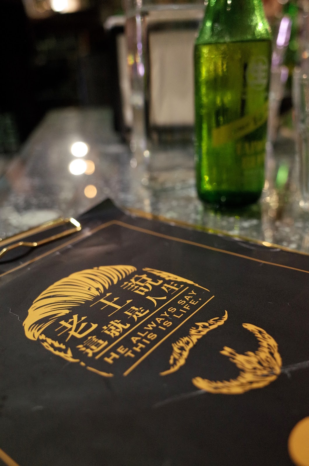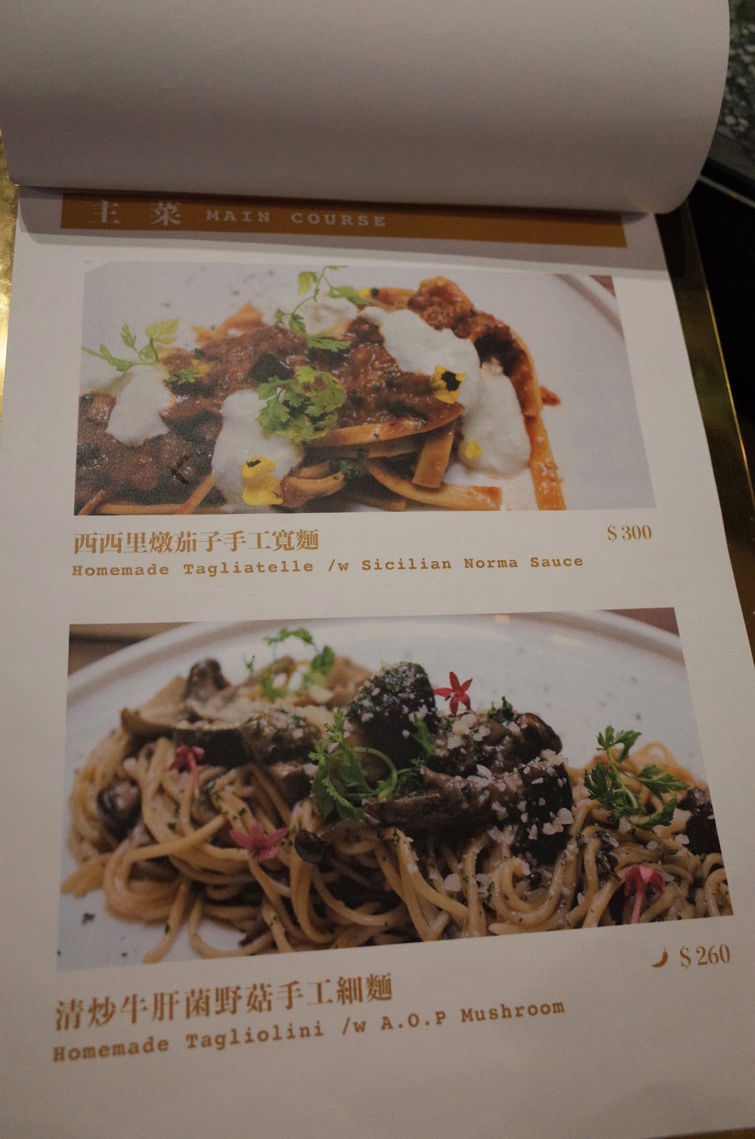 菜單質感很好, 金屬墊板是金色亮面,外觀浮誇、重量也是爆表。