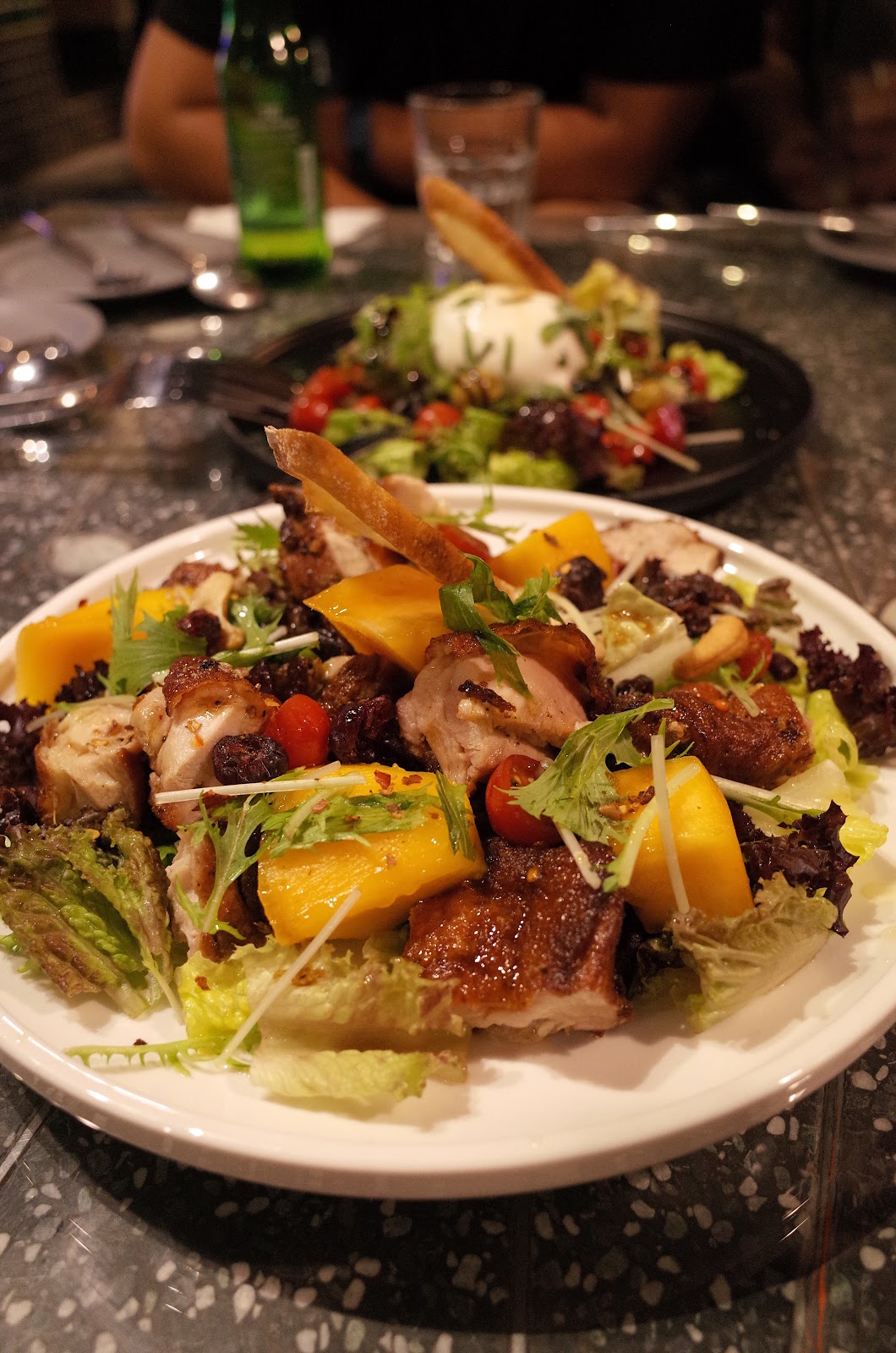 餐前的蔬果烤雞沙拉,這烤雞真的非常的好吃,烤得皮脆肉軟多汁每個人都讚不絕口。芒果莫名的與這些蔬菜極搭配。此外的各項蔬菜也是很新鮮又清脆。
