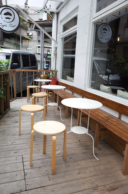 店面位在捷運南京復興站的附近巷子內,走路大概10分鐘左右。店門口有個小花園,也有一些戶外的座位,歐美民眾滿喜歡在戶外悠閒用餐的,但台灣的天氣真的只有深秋與初春的時候比較適合,空氣不會那麼黏膩,也還沒到大風大雨的日子。