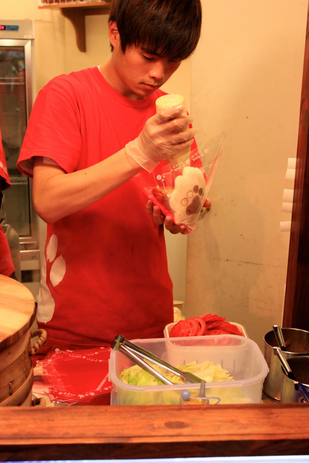 走了好久終於找到傳說中的熊掌包,排隊隊伍超長,前進速度也很慢,生意非常的好。