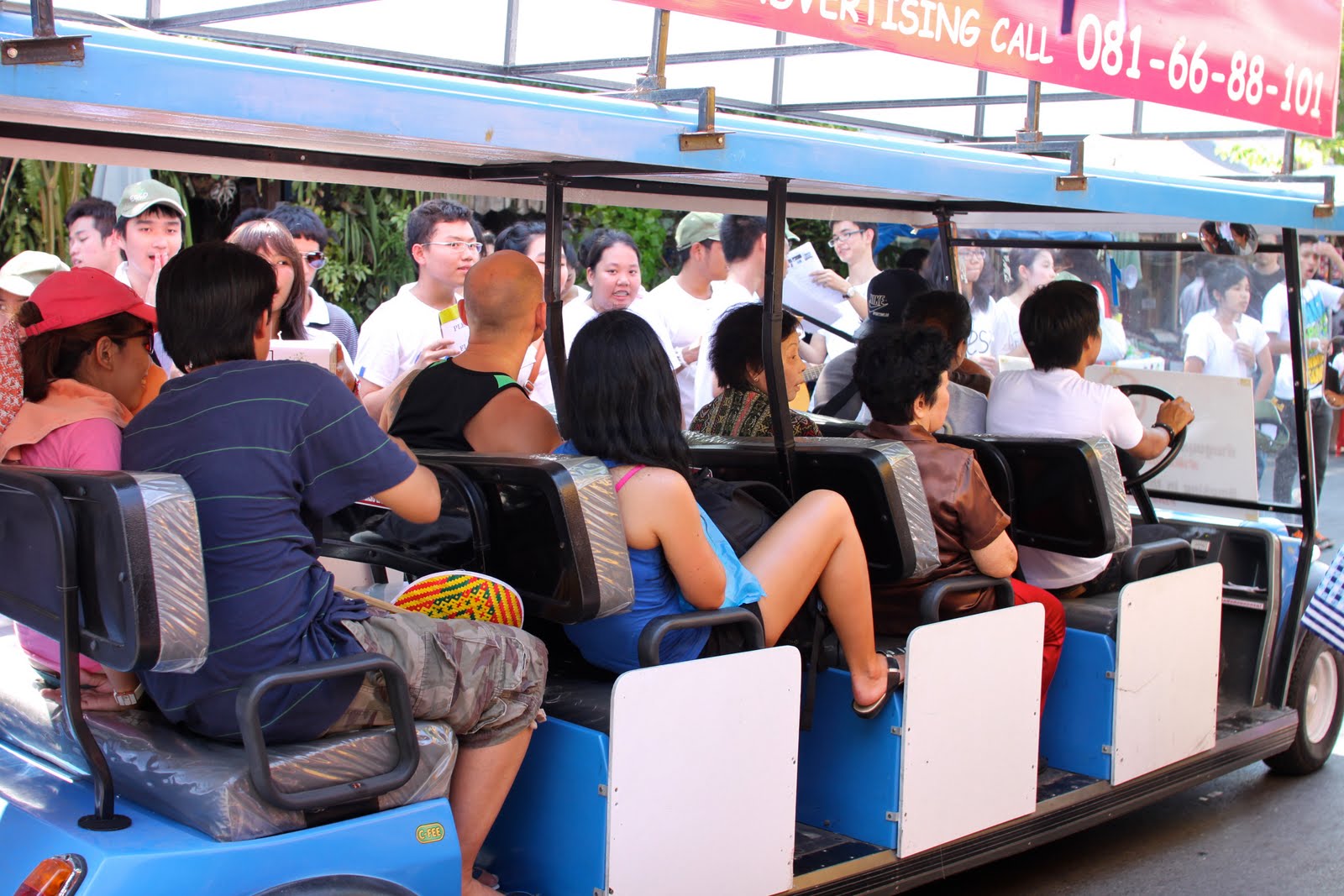▼竟然還有遊園車,比較多西方人跟老人在坐,當時路邊剛好有一群在為泰國南部水災賑災捐款的學生團體,車就這樣停在他們邊邊,真的很狡猾,阿豆仔馬上就掏錢了。