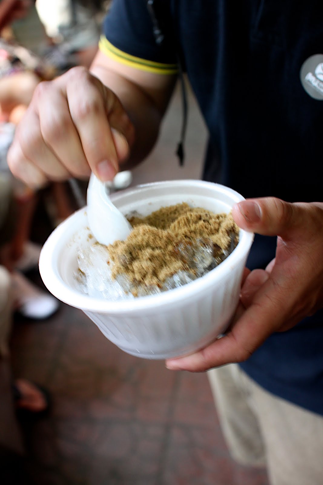 ▼中途買了一碗類似藥草挫冰,裡面是類似青草凍或龜苓膏的粉裸,加上糖水和碎冰塊,上面再灑上類似綠豆粉的東西,口味很奇妙,重點是藥草凍入口非常的清涼,就像吃一顆Airwave到口裡差不多那樣爽快,消暑極推薦。