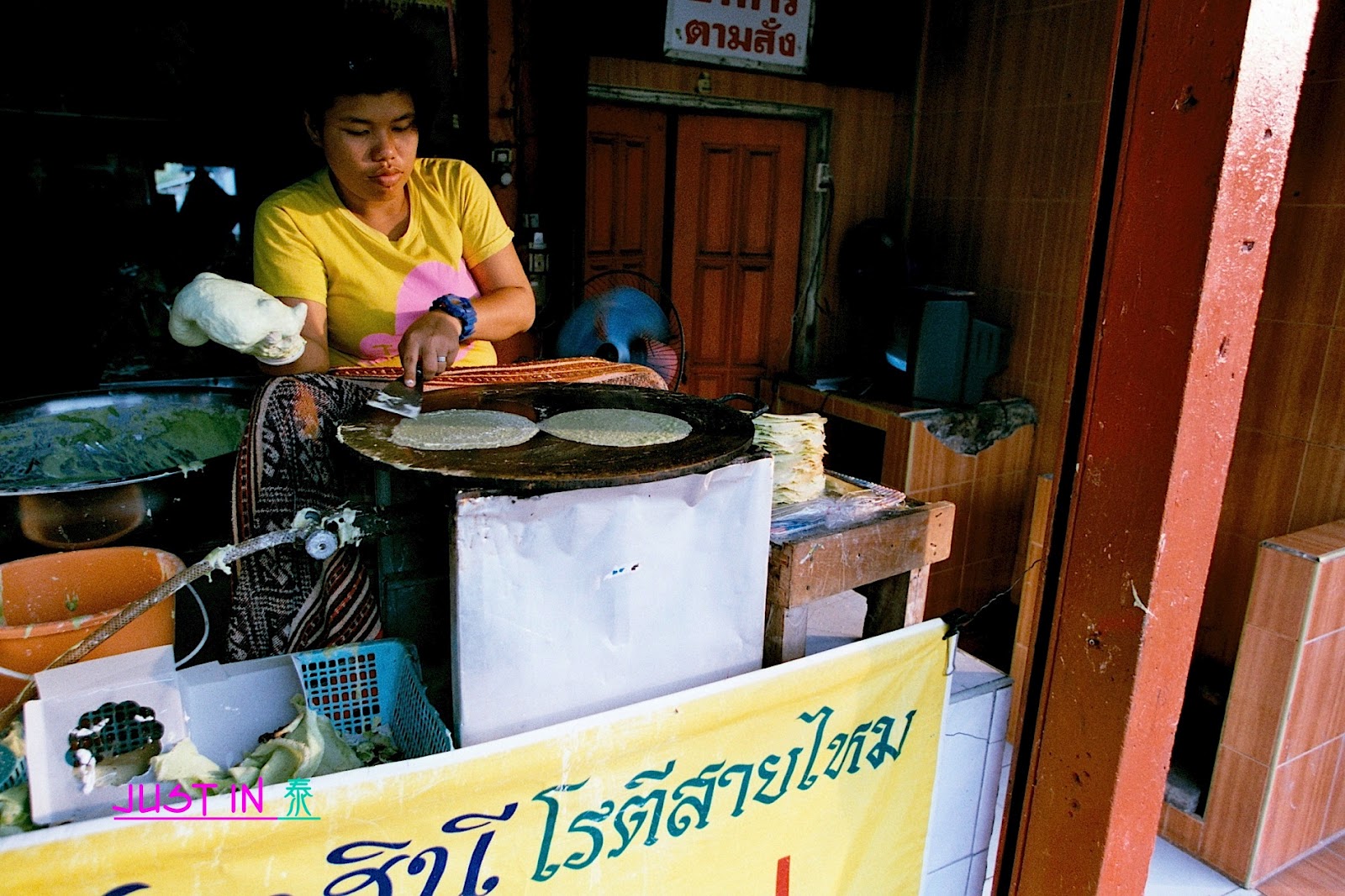 ╬特別的是它要用這個像是春捲皮的餅皮包起來吃,店家剛好正在製作餅皮。