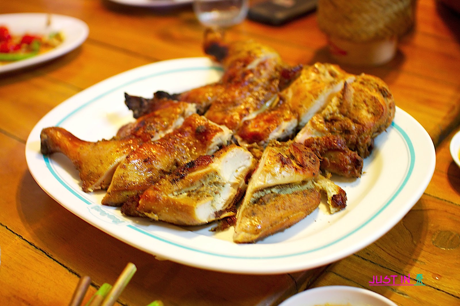 ┬燈燈~今天的主角登場啦!烤雞是這家店的招牌之一,遠近馳名的美味。油脂與瘦肉的比例很剛好,不會過焦也不會過油,完美的一發。