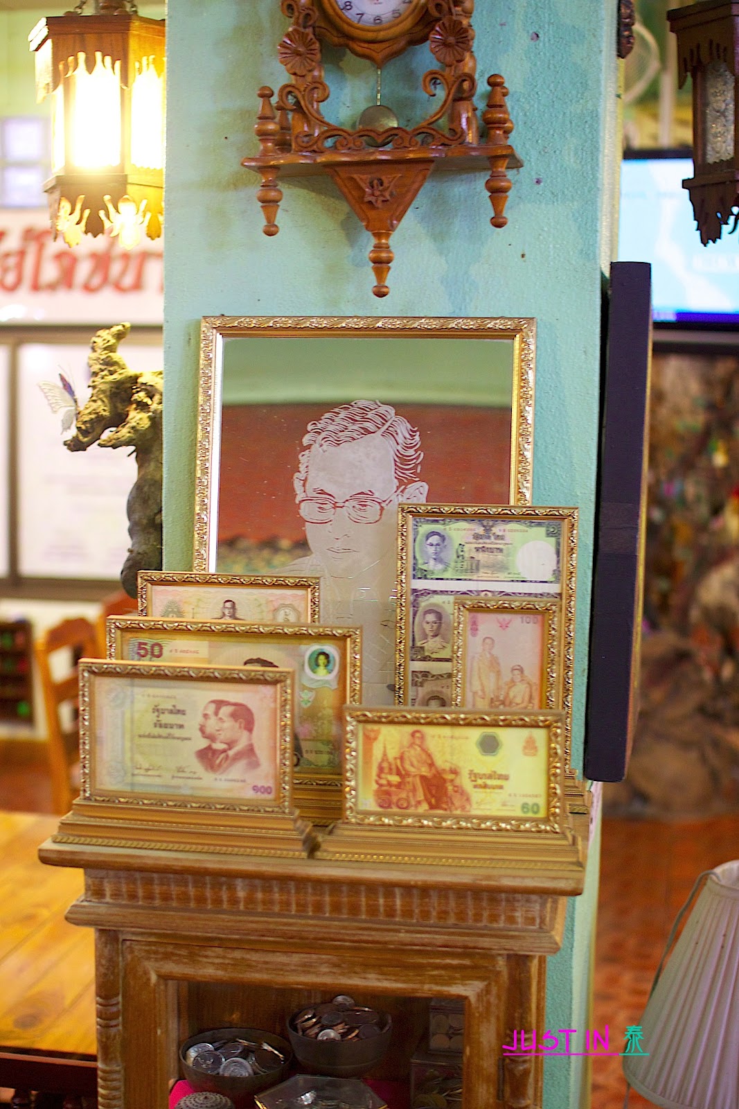 ┬角落擺了一些泰國鈔票,而且都錶框得很好,不知道是不是已經絕版的鈔票。