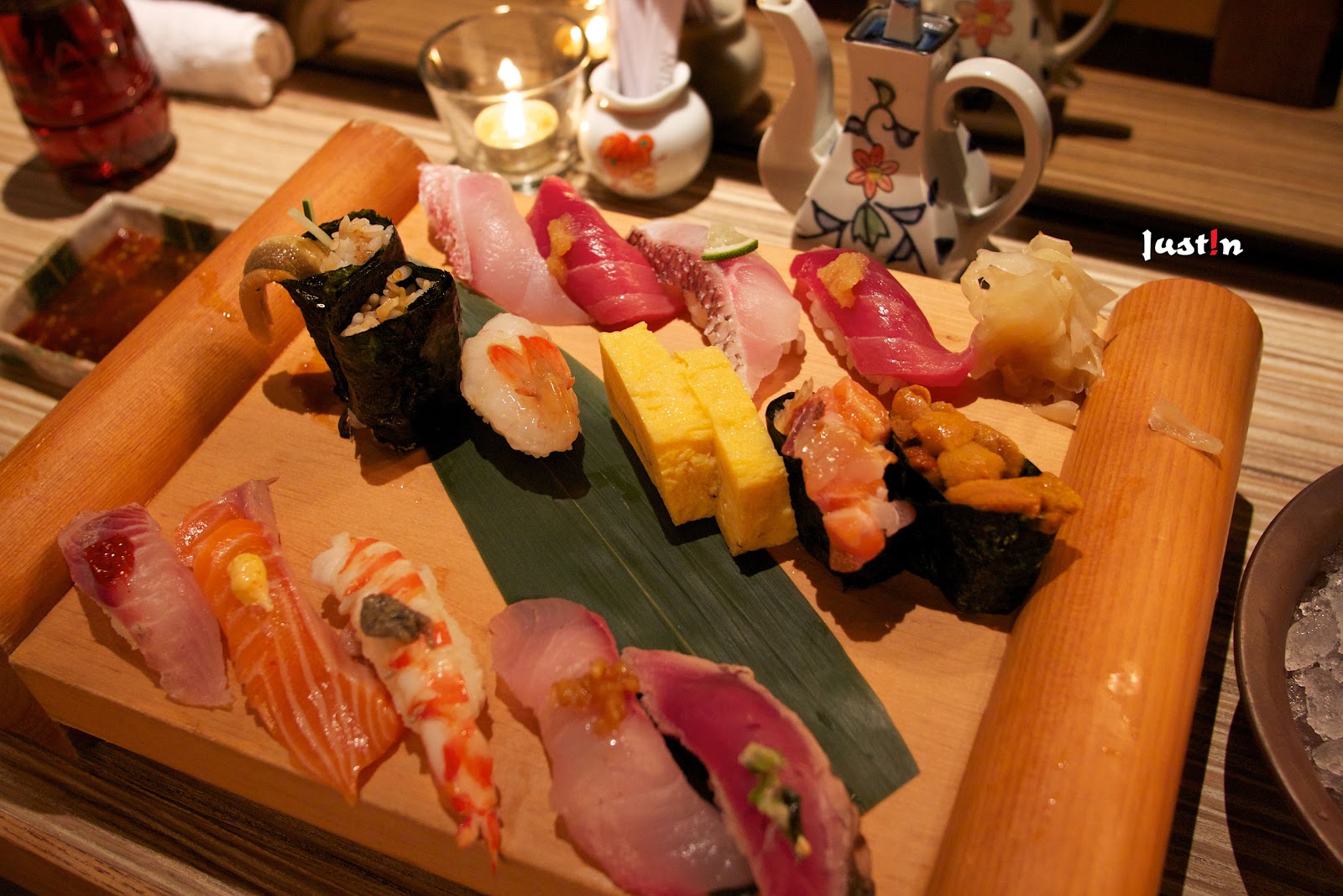 ▼今天的主要目標就是立吞壽司區域,要先在出入口處抽號碼牌,記得隨時注意一下號碼機,不知道過號會不會讓你再進去,若想坐在料理台前也要先跟服務員說一下,不然他會要你重等喔!店裡的裝設都很用心,人隨時都很多,用餐算是滿有氣氛的,但絕對無法安安靜靜。