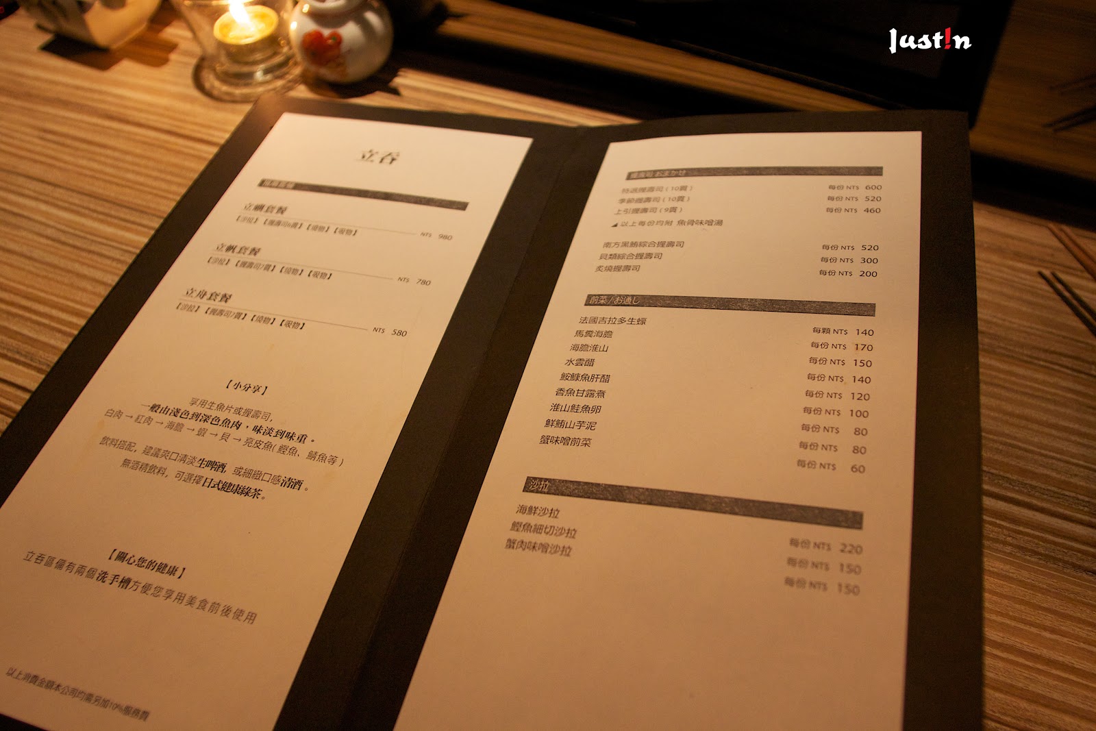 ▼這裡主要就是壽司、生魚類的料理, 還有一些烤物、沙拉跟飲料等,有套餐也有單點。跟服務生點完之後就會有人來幫忙結帳,每點一次就要結帳一次,這裡只能用現金喔。