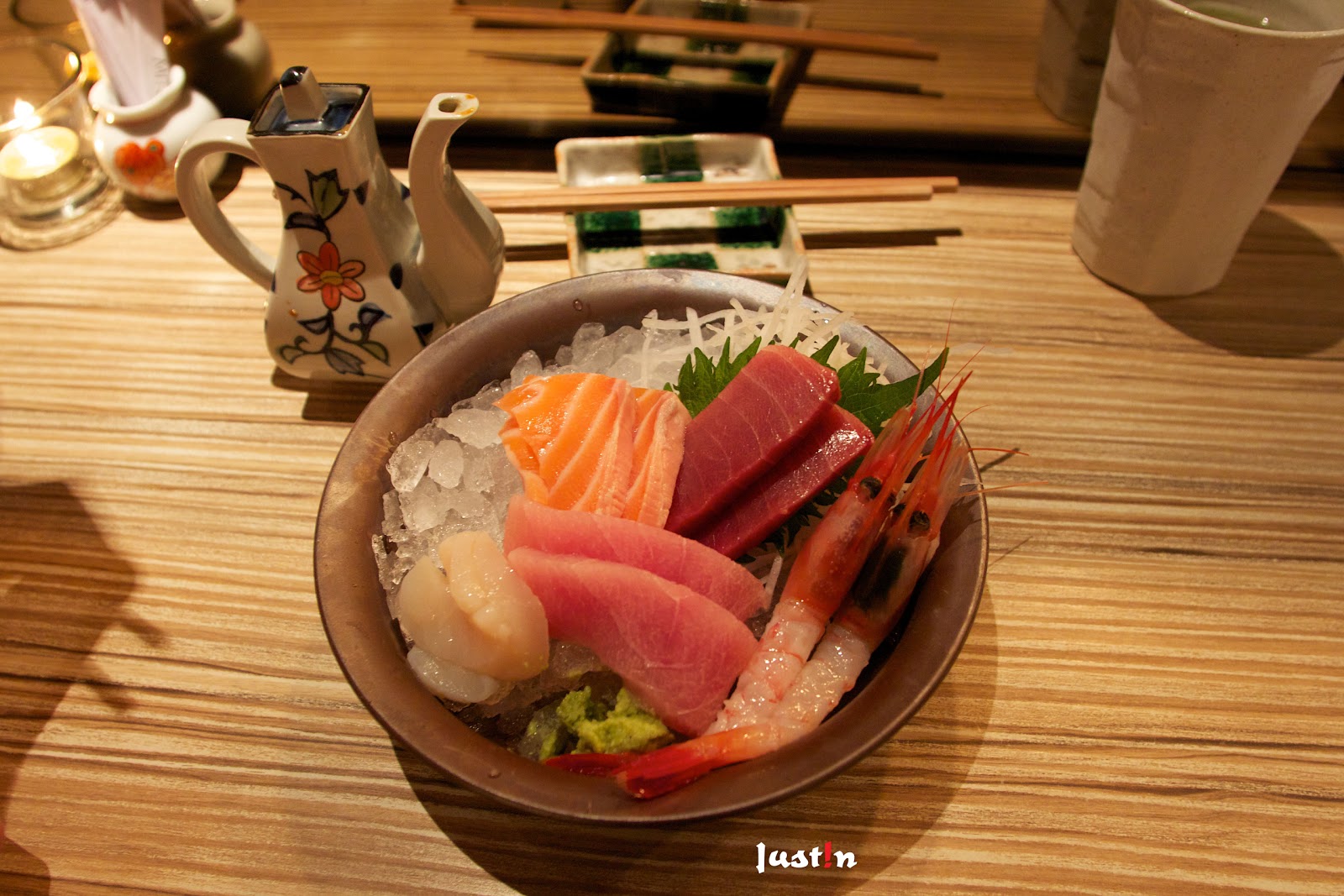特選生魚片,有入口即化的鮪魚大腹、鮪魚赤身、鮭魚、干貝與甜蝦。